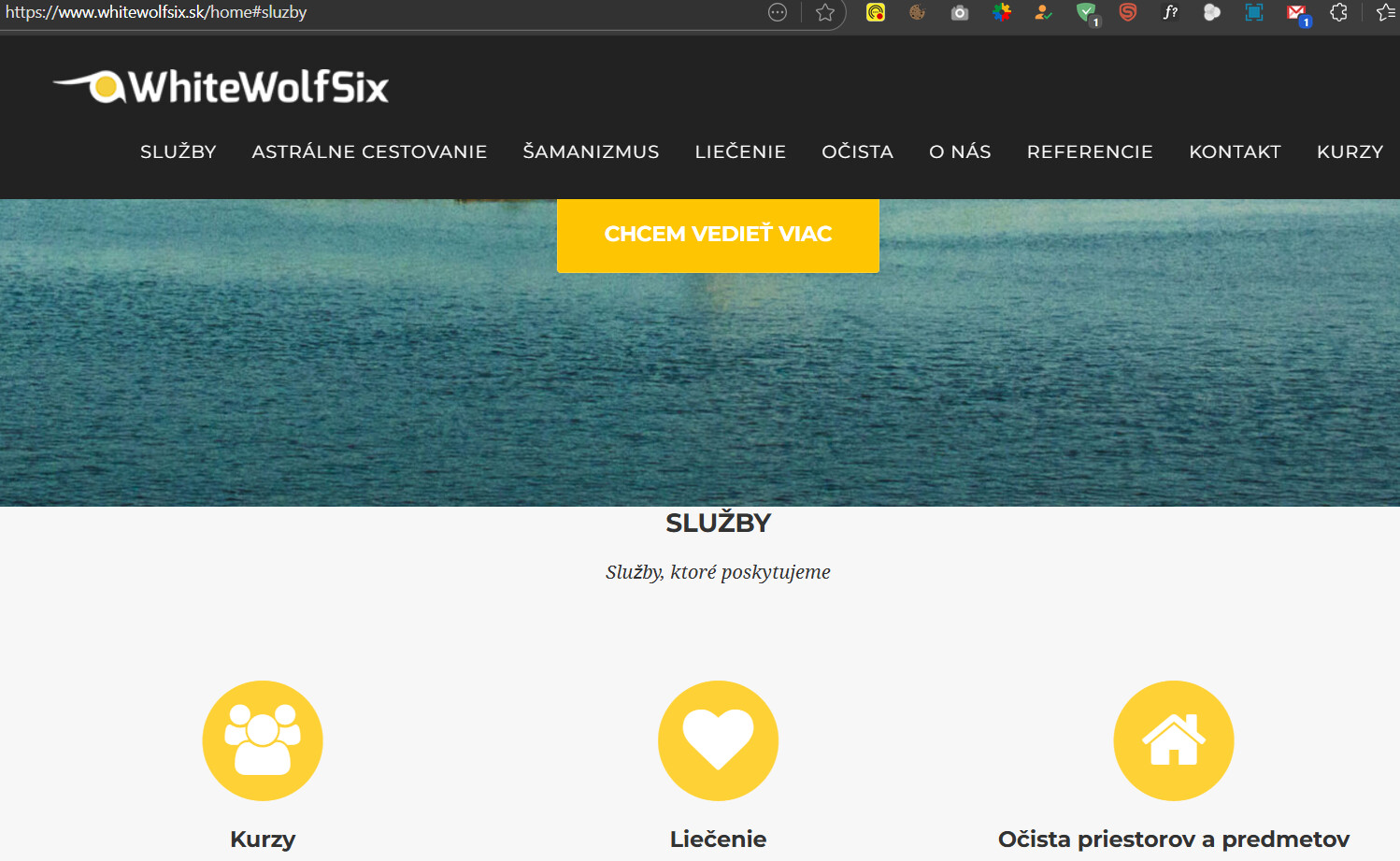 My live website is in default language only. In navigation, 8 out of 9 links are linked on a home page (e.g. https://www.whitewolfsix.sk/home#sluzby or https://www.whitewolfsix.sk/home#onas) and the last one https://www.whitewolfsix.sk/kurzy redirect to events plugin page.